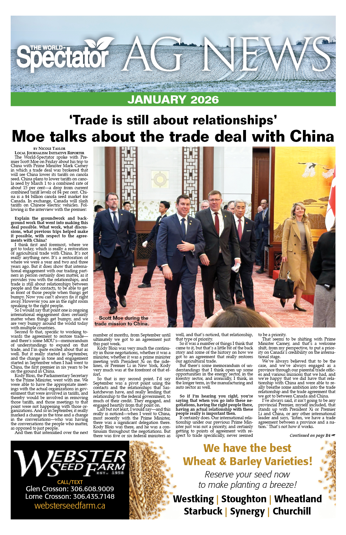 The World-Spectator spoke with Premier Scott Moe on Friday about his trip to China with Prime Minister Mark Carney in which a trade deal was brokered that will see China lower...